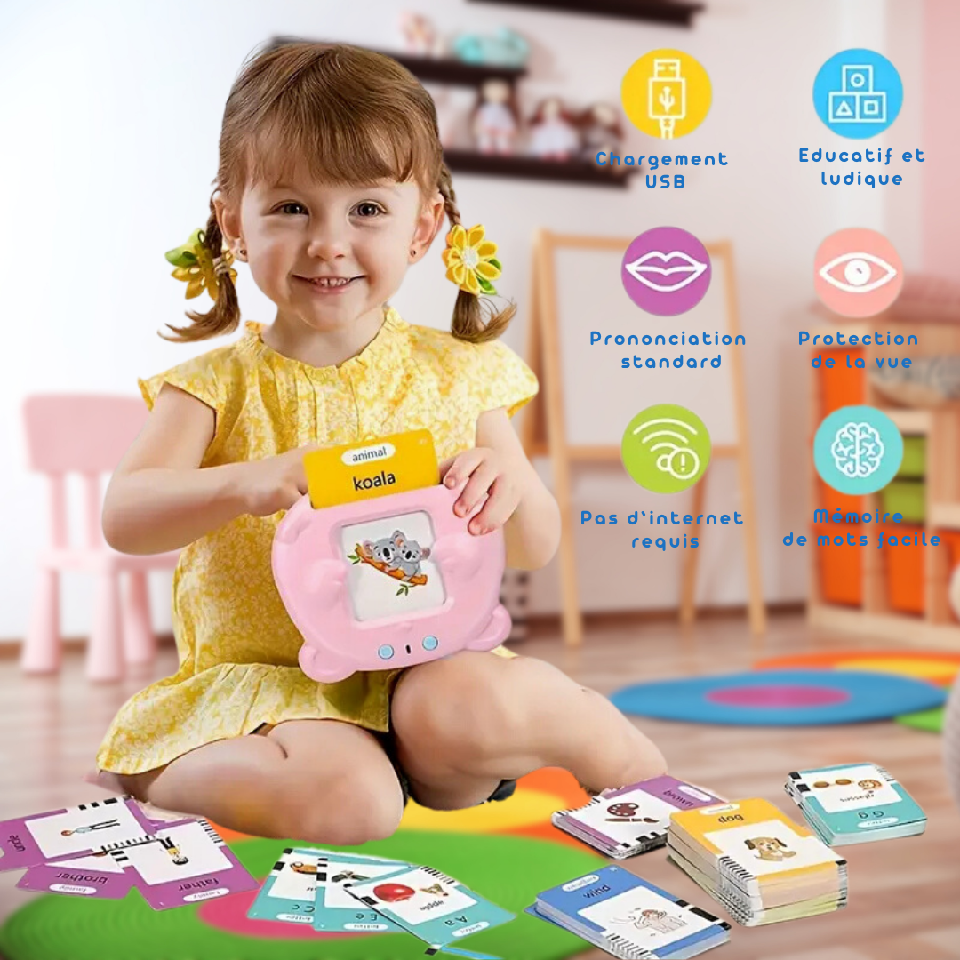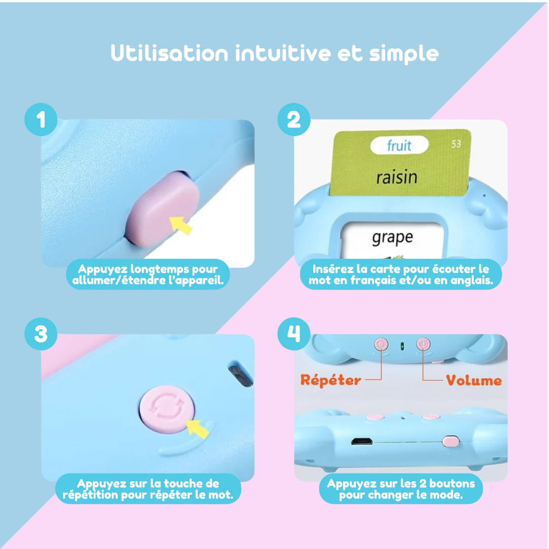 LexiPop™ a été pensé pour les petites mains et est d’une utilisation intuitive. Glissez une carte, écoutez, et laissez votre enfant découvrir les mots avec émerveillement.